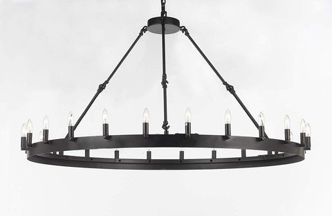 Set of 2 - Wrought Iron Vintage Barn Metal Castile One Tier Chandelier Chandeliers Industrial Loft Rustic Lighting W 50" H 34" - 2EA G7-B48/3428/24