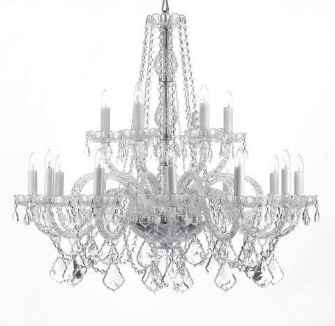 A Great European Tradition. Nothing is quite as elegant as the fine crystal chandeliers that gave sparkle to brilliant evenings at palaces and manor houses across Europe. This beautiful crystal chandelier is decorated with 100% crystal that capture and reflect the light of the candle bulbs, each resting in a scalloped bobache.The timeless elegance of this chandelier is sure to lend a special atmosphere in every home! Please note this item requires assembly. This item comes with 18 inches of chain. SIZE: H.27" X W.32" 12 LIGHTS.